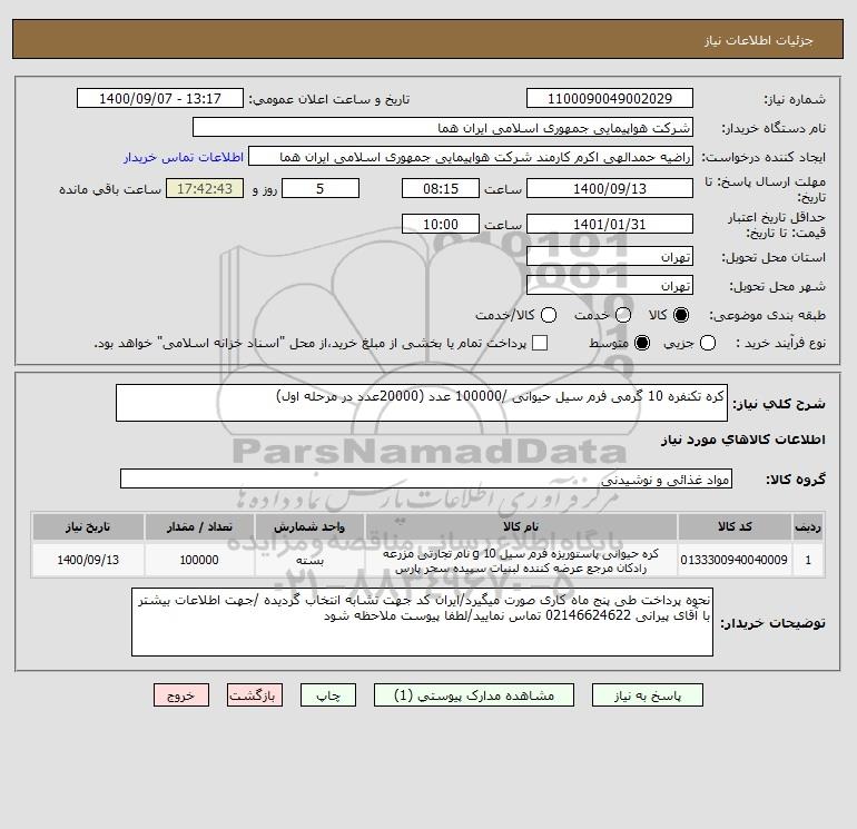 نام دستگاه خریدار:شرکت هواپیمایی جمهوری اسلامی ایران هما