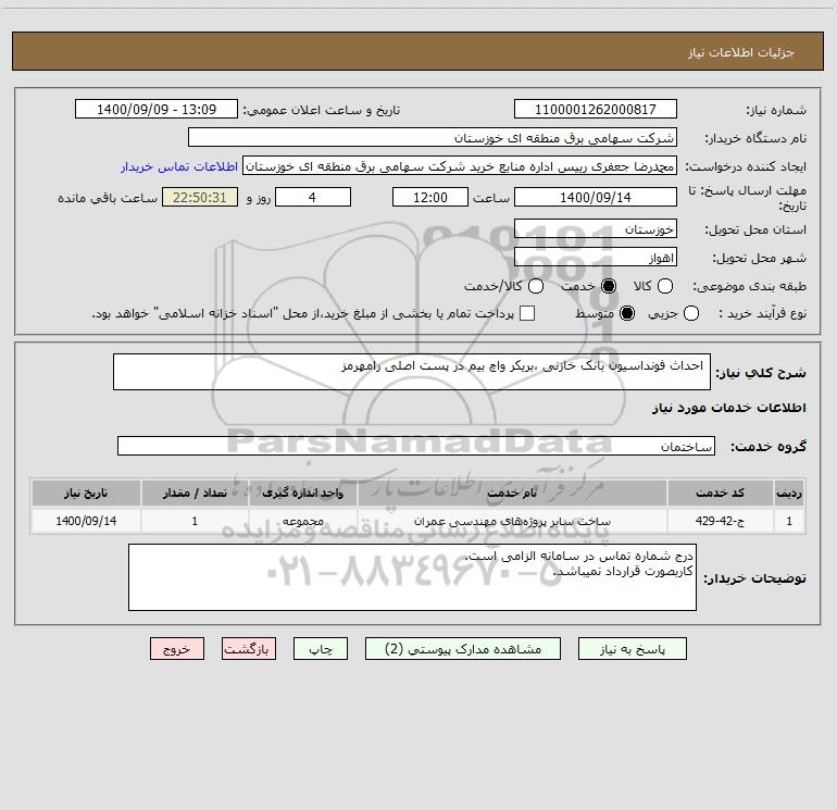 شرح کلی نیاز: احداث فونداسیون بانک خازنی ،بریکر واچ بیم در پست اصلی رامهرمز