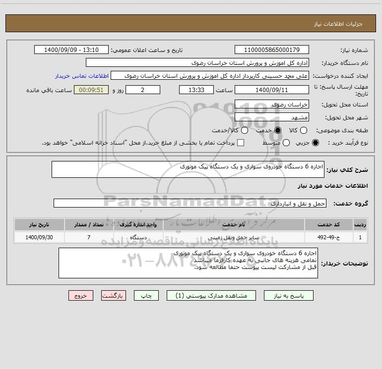 توضیحات خریدار:اجاره 6 دستگاه خودروی سواری و یک دستگاه پیک موتوری