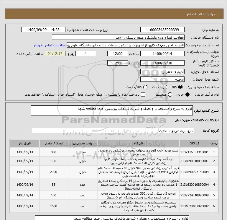 نام دستگاه خریدار:معاونت غذا و دارو دانشگاه علوم پزشکی ارومیه
