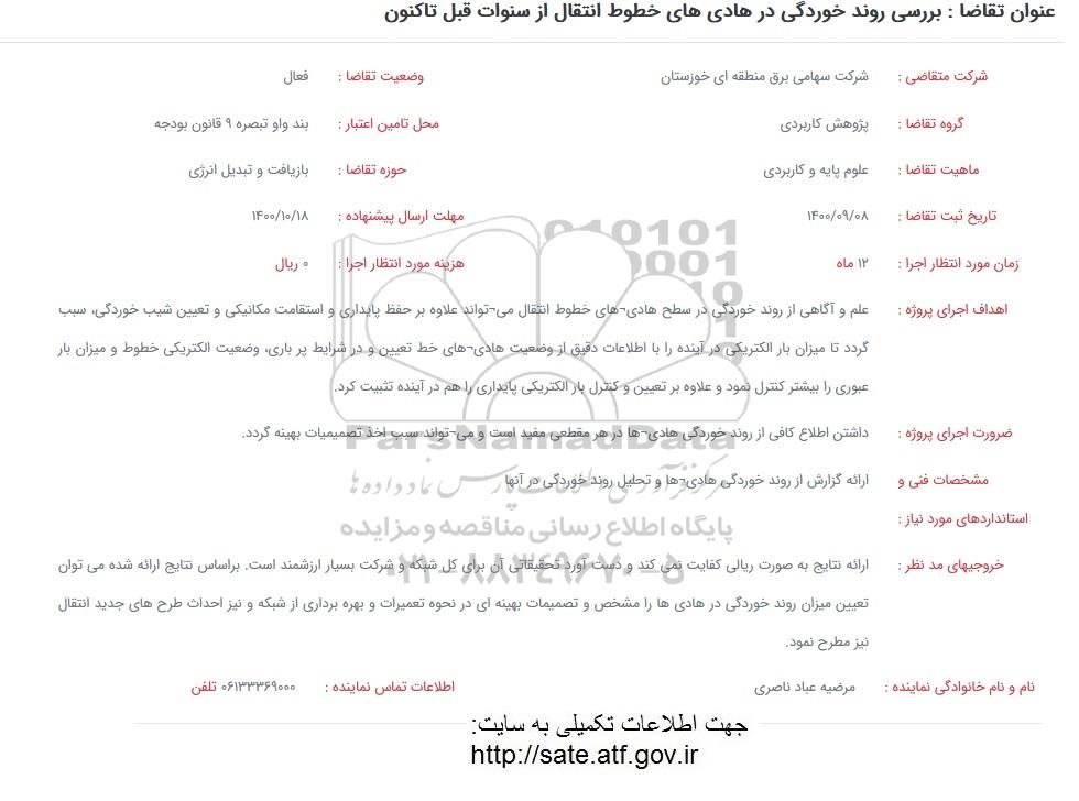 شرکت متقاضی: شرکت سهامی برق منطقه ای خوزستان