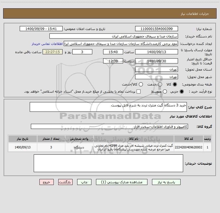نام دستگاه خریدار:سازمان صدا و سیمای جمهوری اسلامی ایران