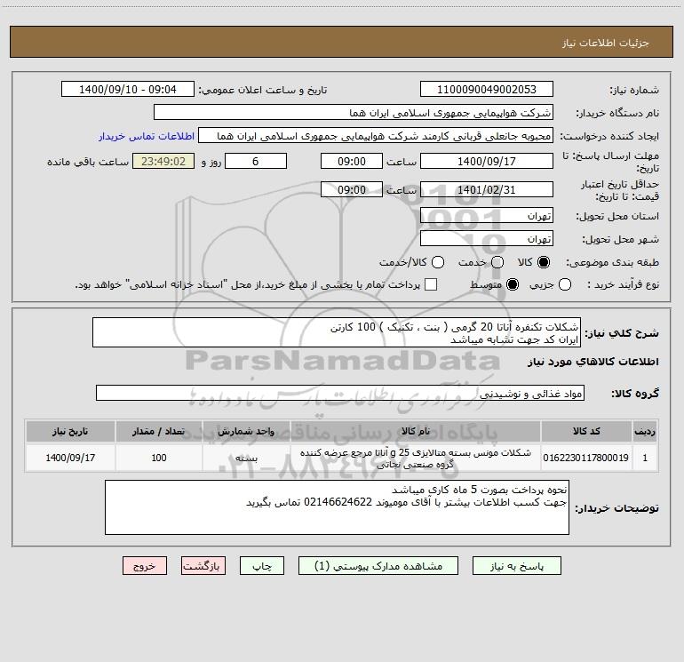 نام دستگاه خریدار:شرکت هواپیمایی جمهوری اسلامی ایران هما