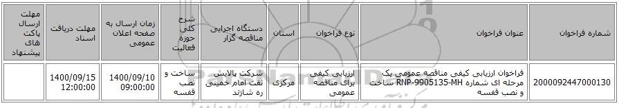 مناقصه، فراخوان ارزیابی کیفی مناقصه عمومی یک مرحله ای شماره RNP-9905135-MH ساخت و نصب قفسه, فراخوان ارزیابی کیفی مناقصه عمومی یک مرحله ای شماره RNP-9905135-MH ساخت و نصب قفسه