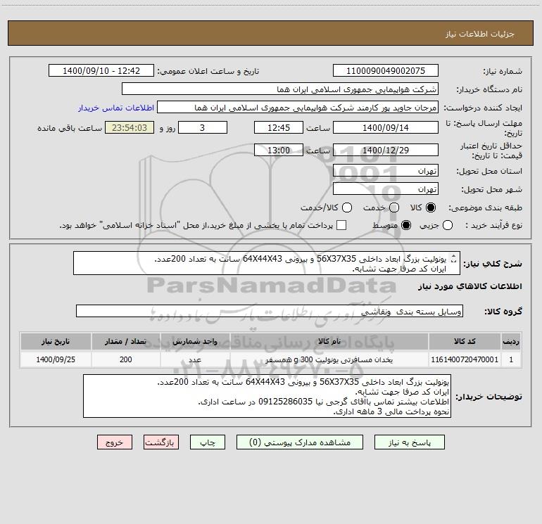 نام دستگاه خریدار:شرکت هواپیمایی جمهوری اسلامی ایران هما