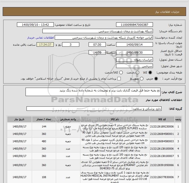 نام دستگاه خریدار:شبکه بهداشت و درمان شهرستان سرخس