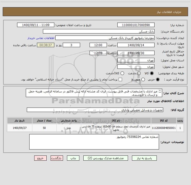شرح کلی نیاز: میز اداری با مشخصات فنی فایل پیوست. ایران کد مشابه ارائه پیش فاکتور در سامانه الزامی. هزینه حمل و ارسال با فروشنده.