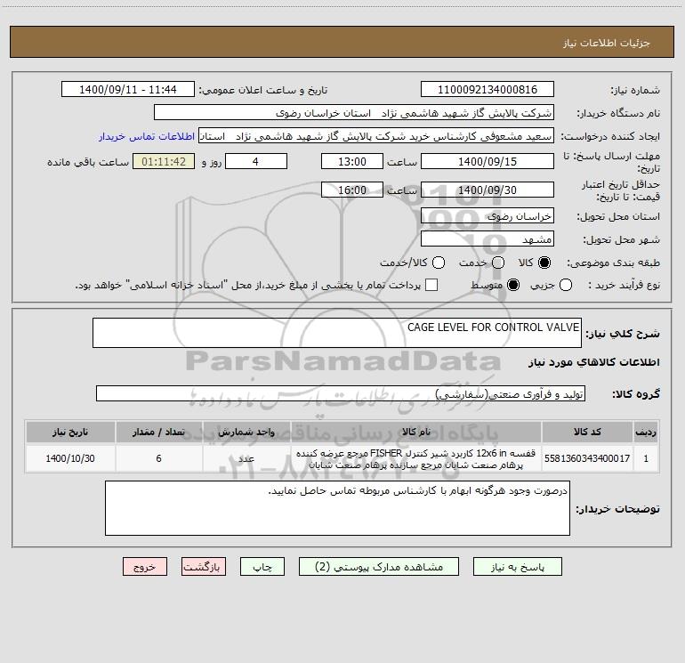نام دستگاه خریدار:شرکت پالایش گاز شهید هاشمی نژاد استان خراسان رضوی