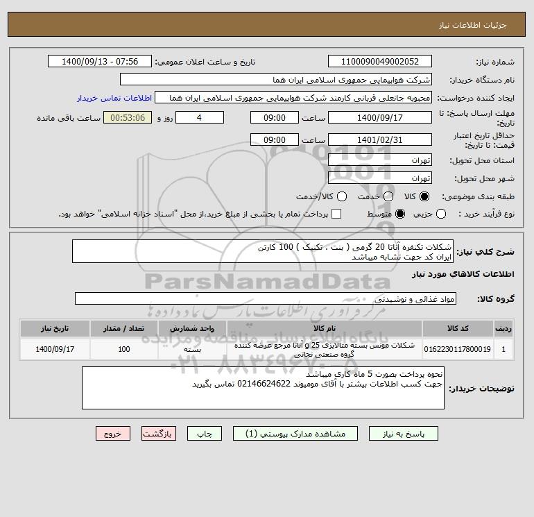 نام دستگاه خریدار:شرکت هواپیمایی جمهوری اسلامی ایران هما