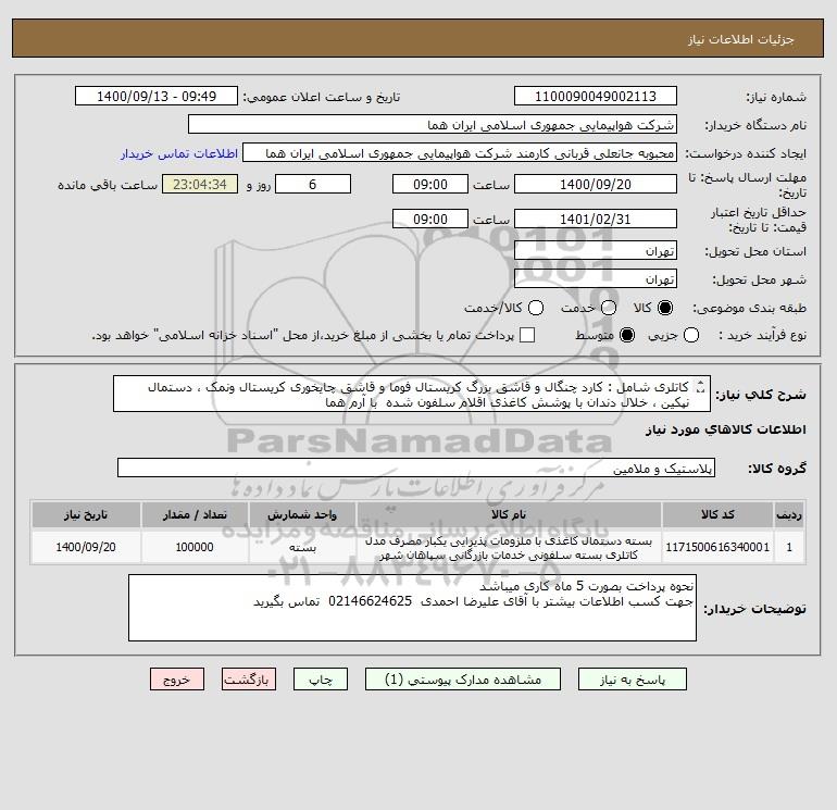 نام دستگاه خریدار:شرکت هواپیمایی جمهوری اسلامی ایران هما
