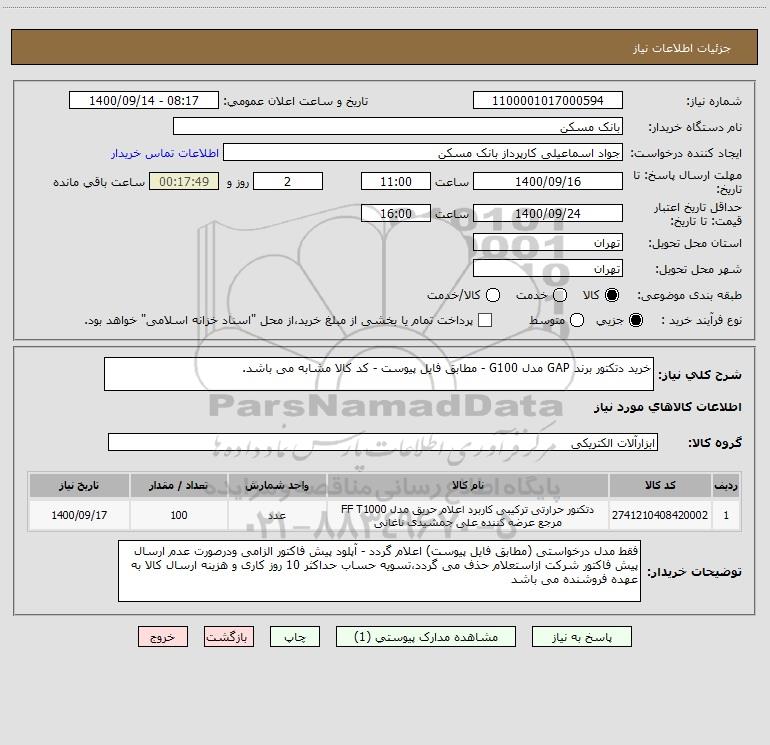شرح کلی نیاز: خرید دتکتور برند GAP مدل G100 - مطابق فایل پیوست - کد کالا مشابه می باشد.