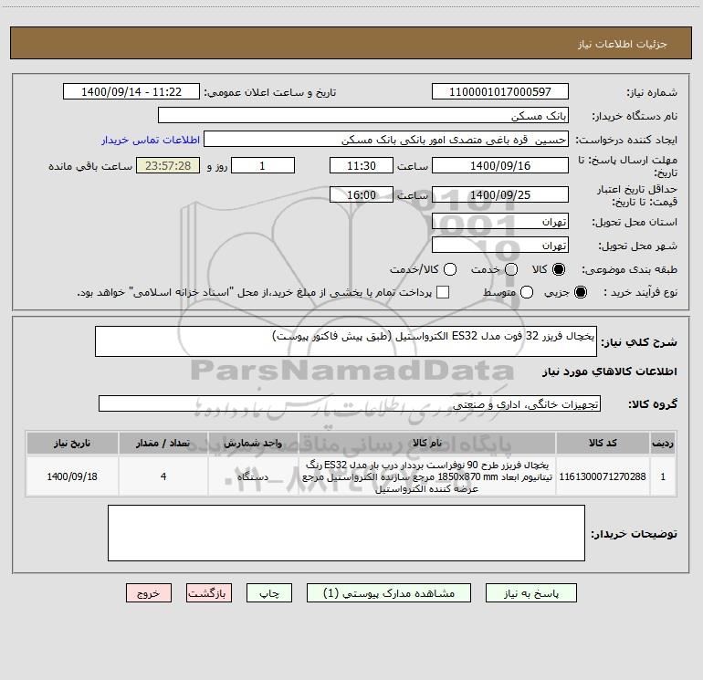 شرح کلی نیاز: یخچال فریزر 32 فوت مدل ES32 الکترواستیل (طبق پیش فاکتور پیوست)