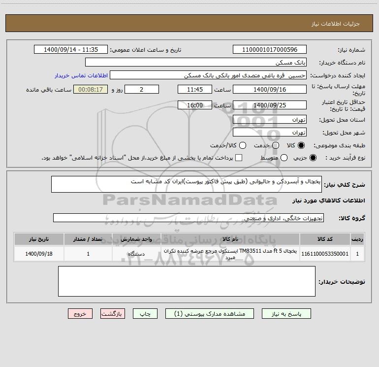 شرح کلی نیاز: یخچال و آبسردکن و جالیوانی (طبق پیش فاکتور پیوست)ایران کد مشابه است