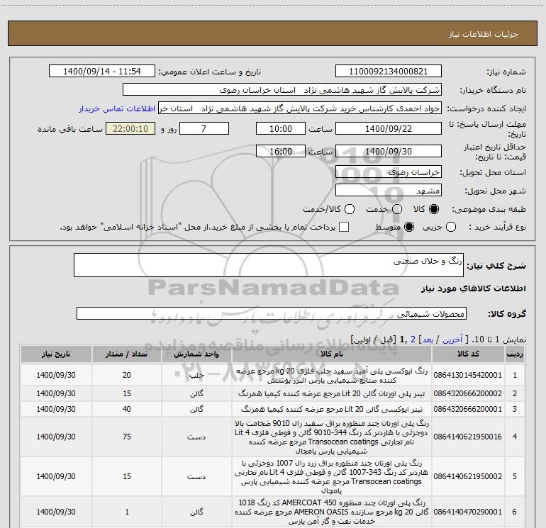 نام دستگاه خریدار:شرکت پالایش گاز شهید هاشمی نژاد استان خراسان رضوی