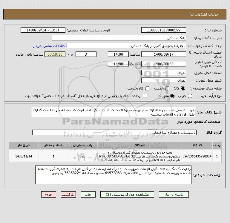 شرح کلی نیاز: خرید، تعویض, نصب و راه اندازی میکروپروسسورهای خنک کننده مرکز داده. ایران کد مشابه جهت قیمت گذاری طبق قرارداد و الزامات پیوست