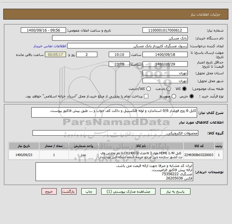 استعلام کابل 6 زوج فویلدار 0/6 استاندارد و لوله فلکسیبل و داکت کف خواب و ... طبق پیش فاکتور پیوست. ؟