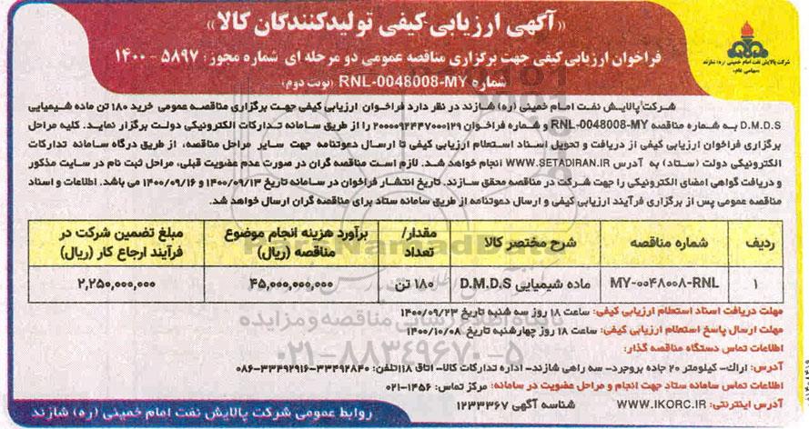 RNL-0048008-MY ماده شیمیایی D.M.D.S 180 تن   45.000.000.000   2.250.000.000