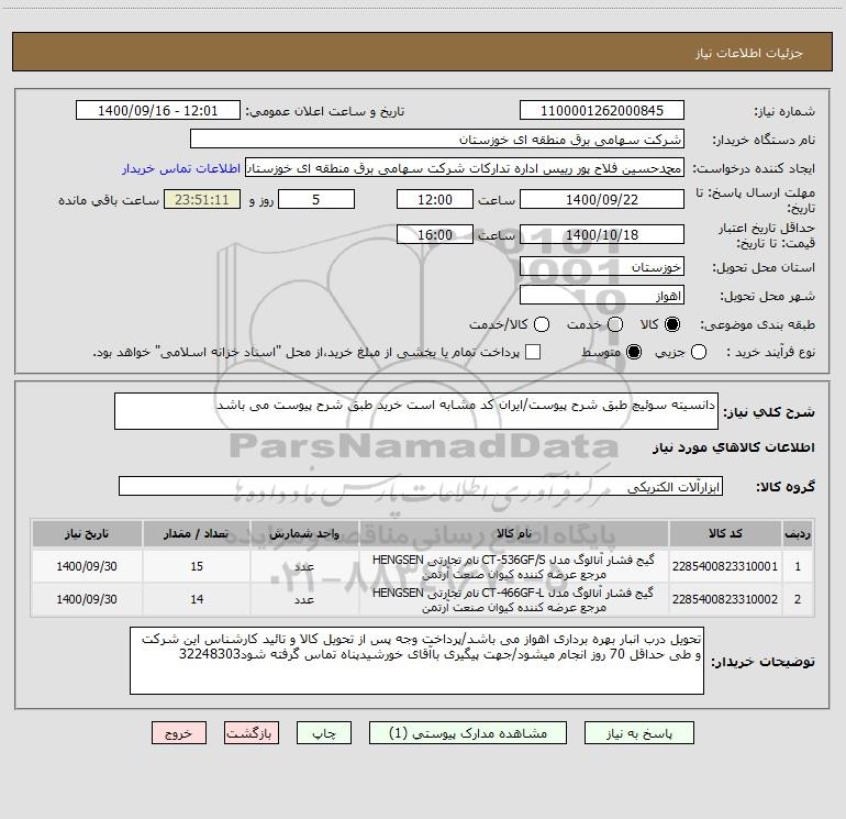 نام دستگاه خریدار:شرکت سهامی برق منطقه ای خوزستان