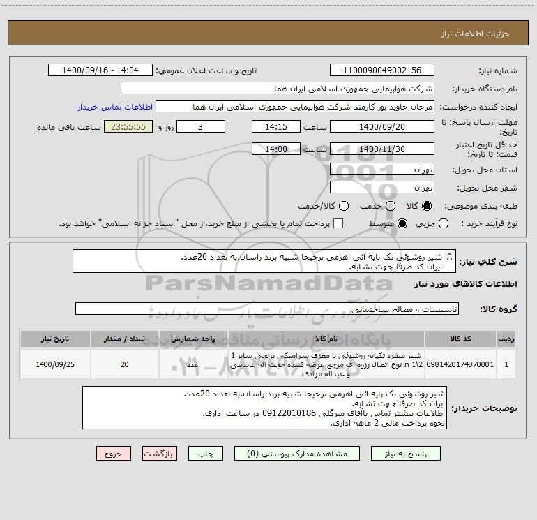استعلام شیر روشوئی تک پایه ائی اهرمی ترحیحا شبیه برند راسان.به تعداد 20عدد. ایران کد صرفا جهت تشابه. اطلاعات بیشتر توضیحات مطالعه شود., استعلام شیر روشوئی تک پایه ائی اهرمی ترحیحا شبیه برند راسان.به تعداد 20عدد. ایران کد صرفا جهت تشابه. اطلاعات بیشتر توضیحات مطالعه شود.