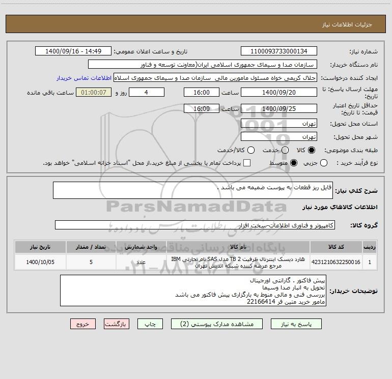 نام دستگاه خریدار: سازمان صدا و سیمای جمهوری اسلامی ایران(معاونت توسعه و فناور