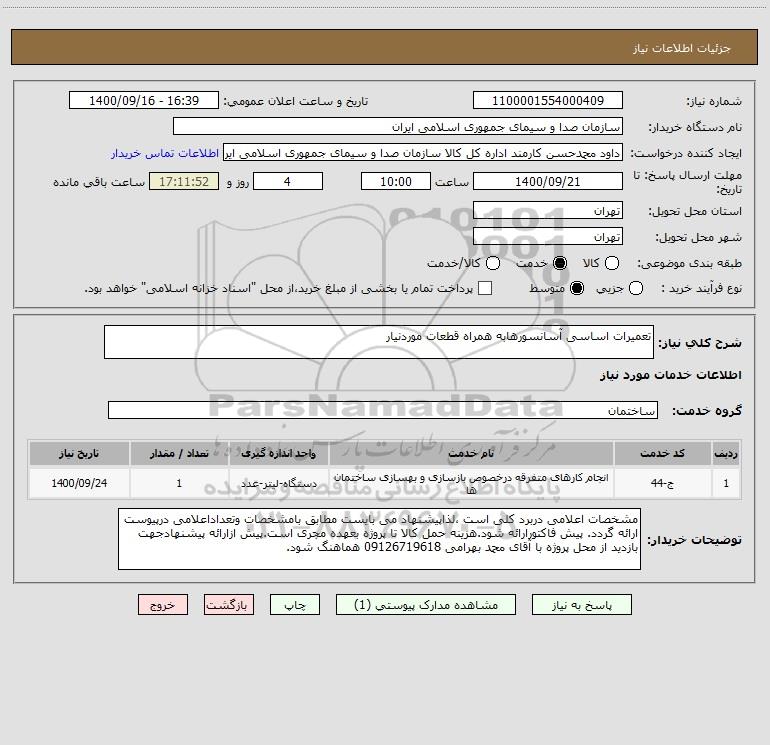 شماره نیاز: 1100001554000409