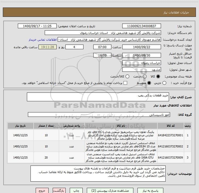 نام دستگاه خریدار:شرکت پالایش گاز شهید هاشمی نژاد استان خراسان رضوی