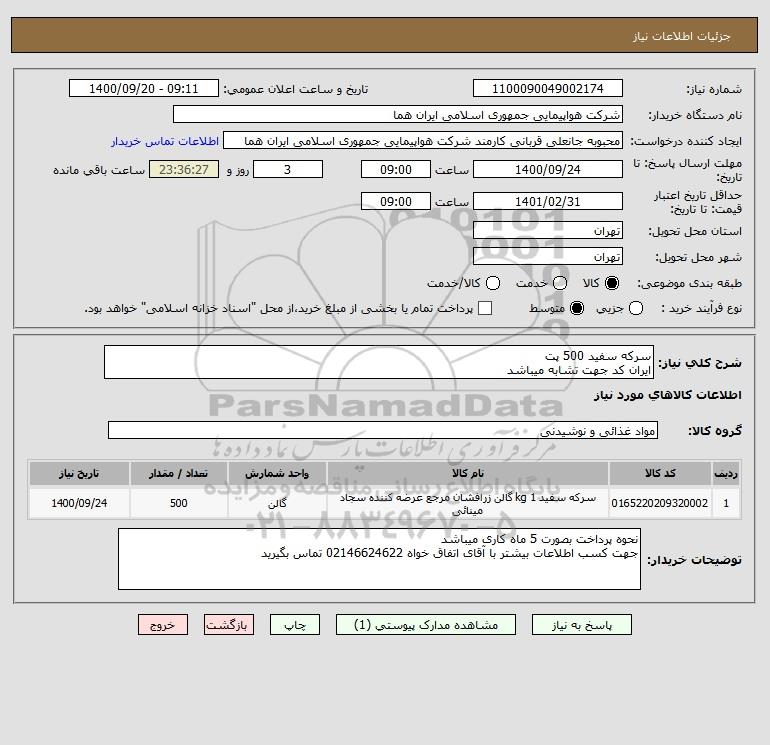 نام دستگاه خریدار:شرکت هواپیمایی جمهوری اسلامی ایران هما