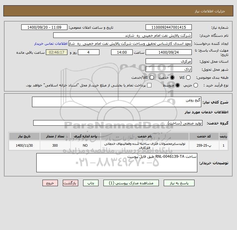 نام دستگاه خریدار:شرکت پالایش نفت امام خمینی ره شازند