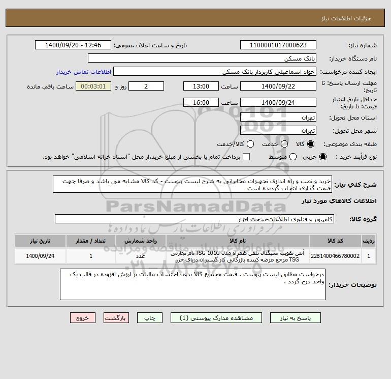 شرح کلی نیاز: خرید و نصب و راه اندازی تجهیزات مخابراتی به شرح لیست پیوست - کد کالا مشابه می باشد و صرفا جهت قیمت گذاری انتخاب گردیده است