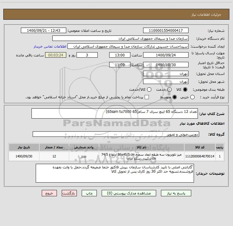 شرح کلی نیاز: تعداد 12 دستگاه 65 اینچ سری 7 سام(65 65sam tu7000)