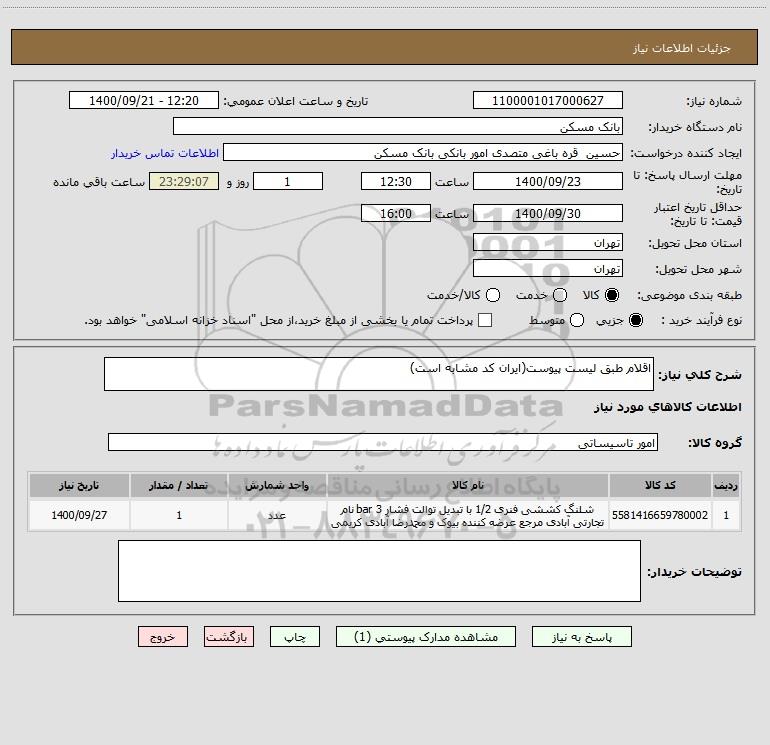 شرح کلی نیاز: اقلام طبق لیست پیوست(ایران کد مشابه است)
