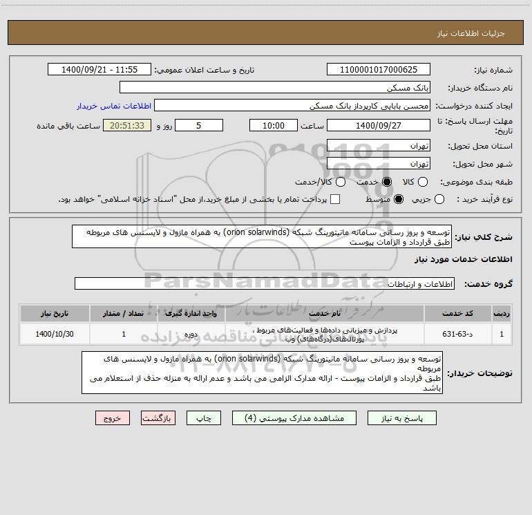 شرح کلی نیاز: توسعه و بروز رسانی سامانه مانیتورینگ شبکه (orion solarwinds) به همراه مازول و لایسنس های مربوطه