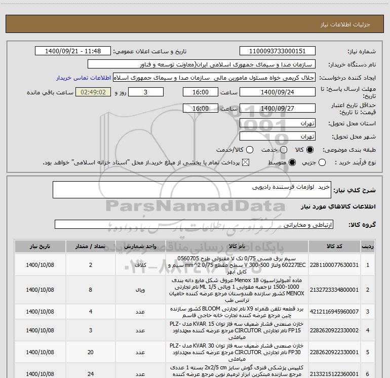 شرح کلی نیاز: خرید لوازمات فرستنده رادیویی
