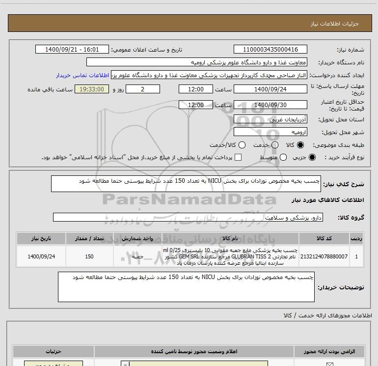 استعلام چسب بخیه مخصوص نوزادان برای بخش NICU به تعداد 150 عدد شرایط پیوستی حتما مطالعه شود, استعلام چسب بخیه مخصوص نوزادان برای بخش NICU به تعداد 150 عدد شرایط پیوستی حتما مطالعه شود