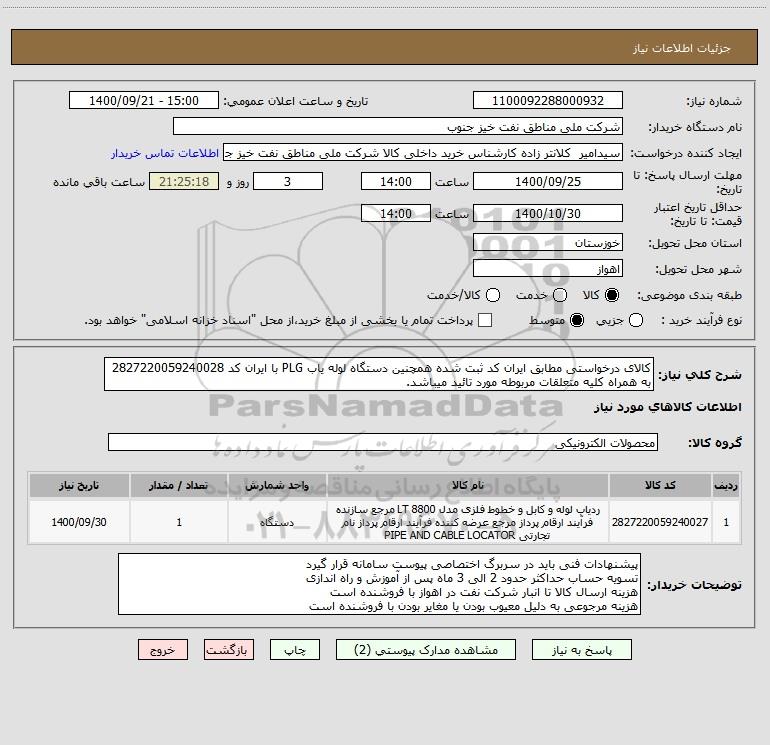 نام دستگاه خریدار:شرکت ملی مناطق نفت خیز جنوب