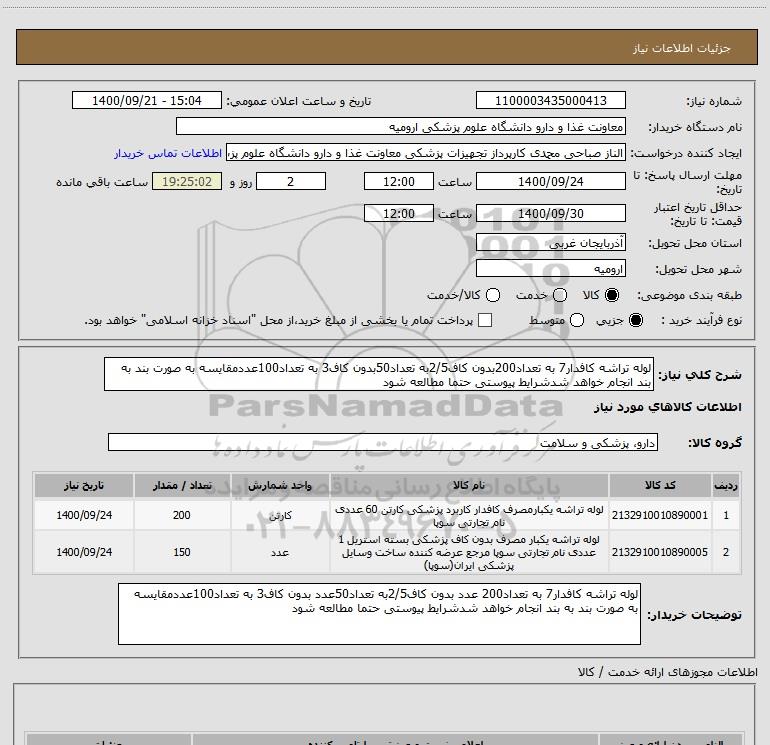 نام دستگاه خریدار:معاونت غذا و دارو دانشگاه علوم پزشکی ارومیه