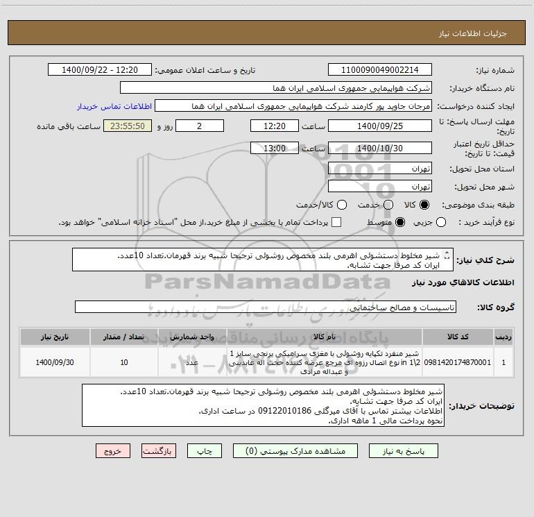 نام دستگاه خریدار:شرکت هواپیمایی جمهوری اسلامی ایران هما