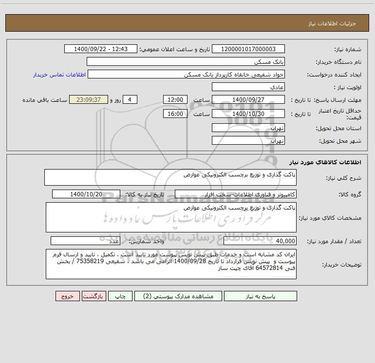 مشخصات کالای مورد نیاز: پاکت گذاری و توزیع برچسب الکترونیکی عوارض