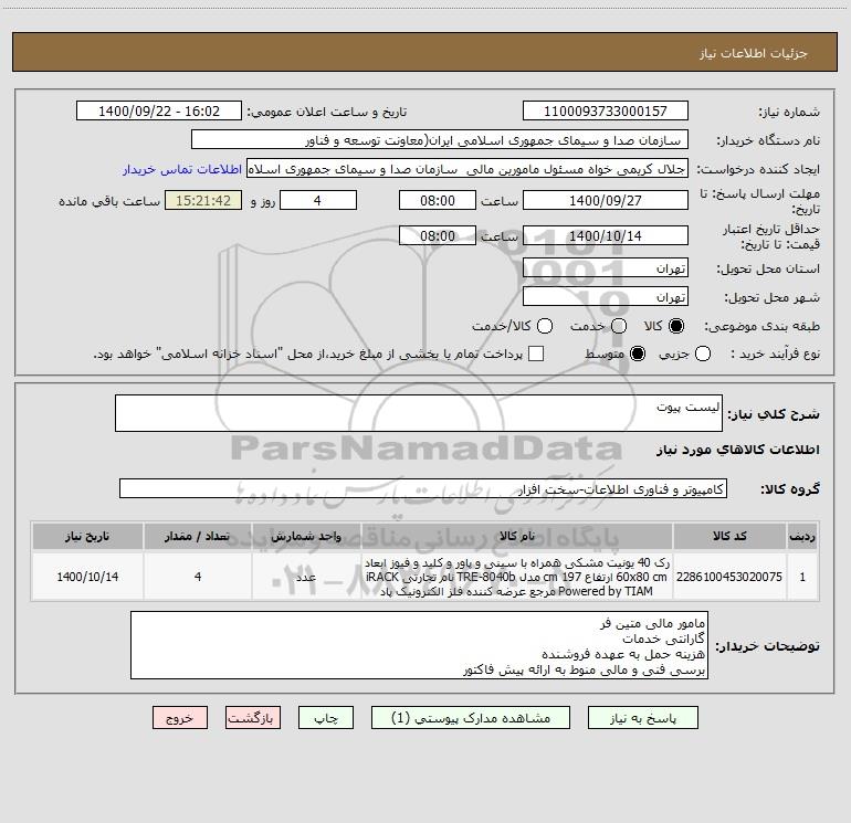 نام دستگاه خریدار: سازمان صدا و سیمای جمهوری اسلامی ایران(معاونت توسعه و فناور