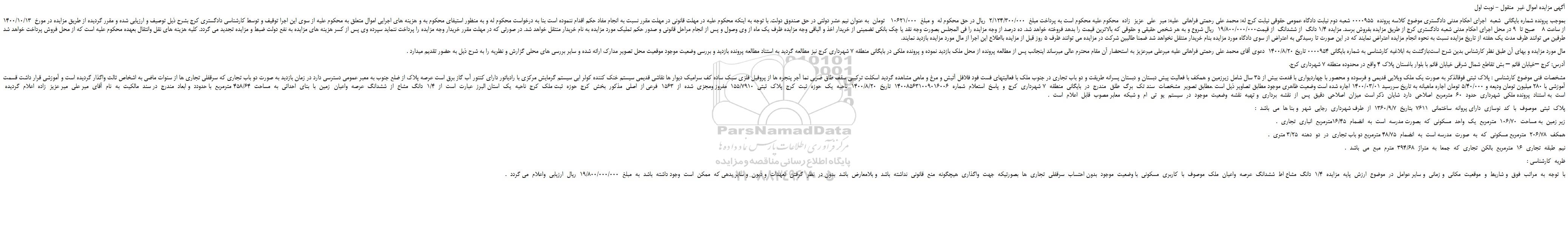 آگهی مزایده اموال غیر منقول - نوبت اول