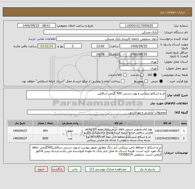 شرح کلی نیاز: ابر و اسکاچ بریتکس و پودر دستی 500 گرمی سافتلن