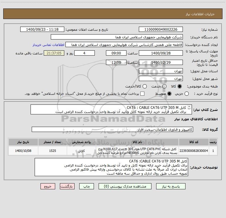 نام دستگاه خریدار:شرکت هواپیمایی جمهوری اسلامی ایران هما