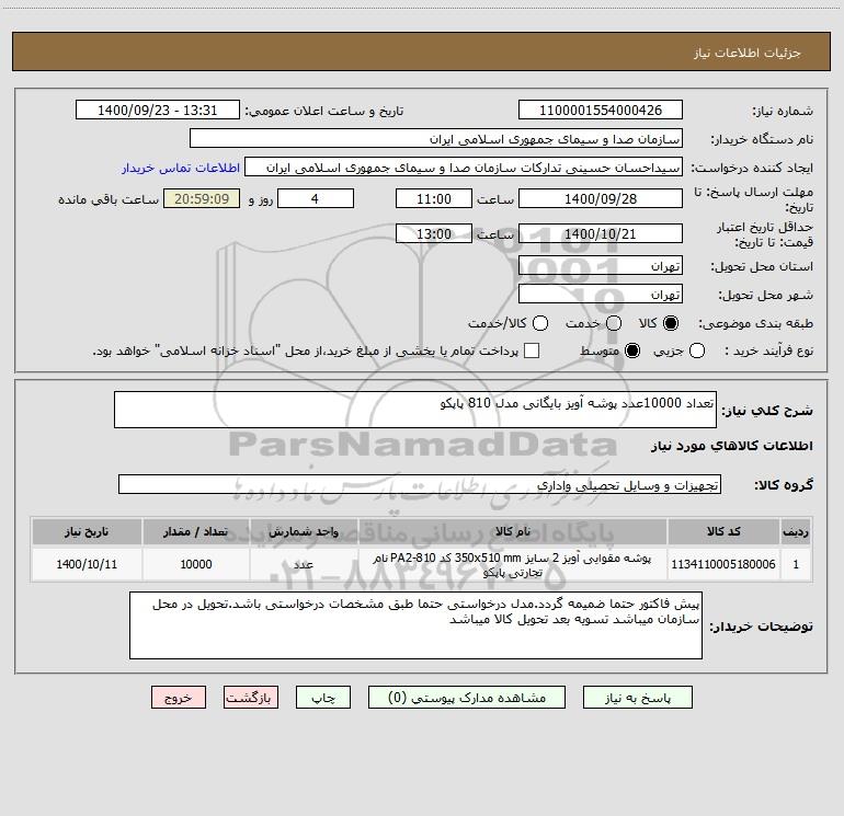 نام دستگاه خریدار:سازمان صدا و سیمای جمهوری اسلامی ایران