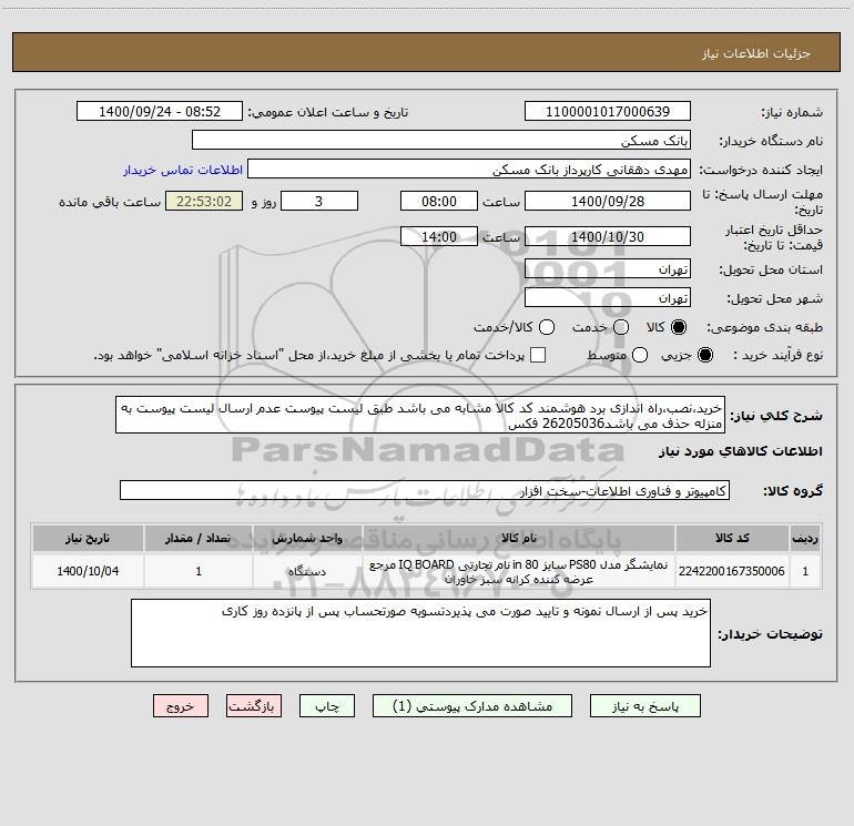 شرح کلی نیاز: خرید،نصب،راه اندازی برد هوشمند کد کالا مشابه می باشد طبق لیست پیوست عدم ارسال لیست پیوست به منزله حذف می باشد26205036 فکس