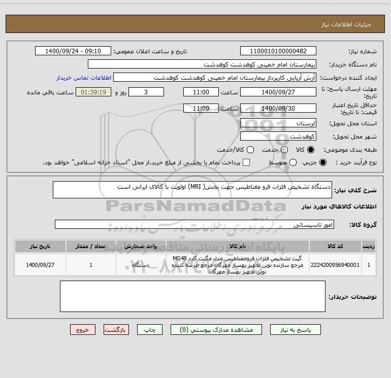 نام دستگاه خریدار:بیمارستان امام خمینی کوهدشت کوهدشت