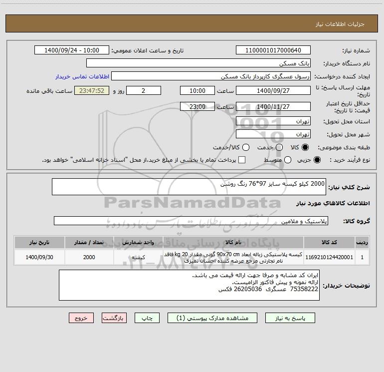 شرح کلی نیاز: 2000 کیلو کیسه سایز 97*76 رنگ روشن