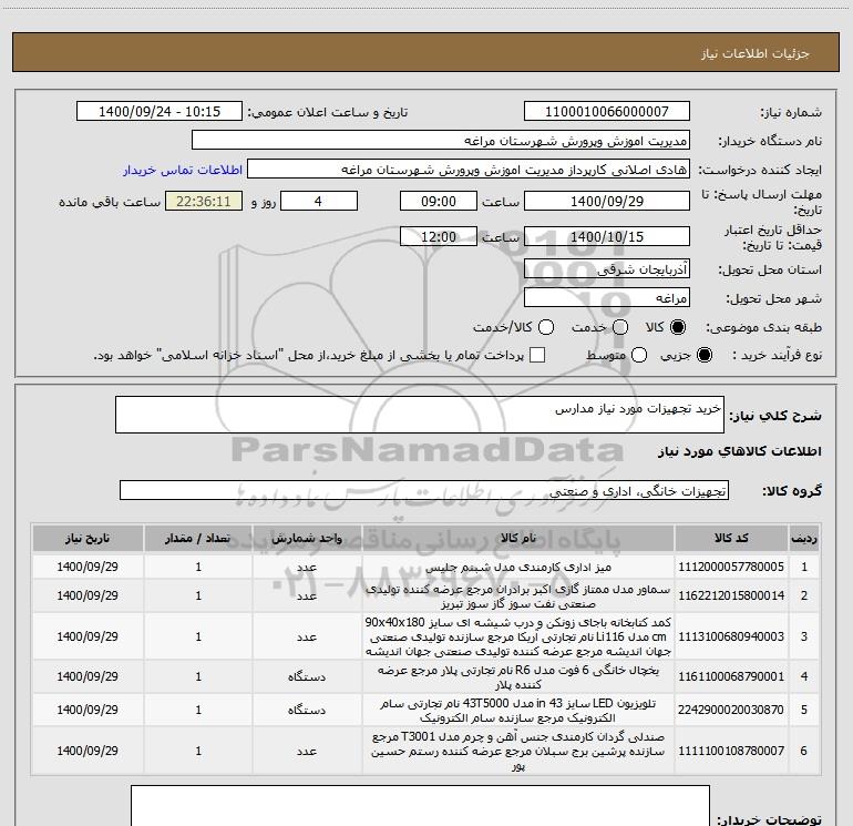 نام دستگاه خریدار:مدیریت اموزش وپرورش شهرستان مراغه