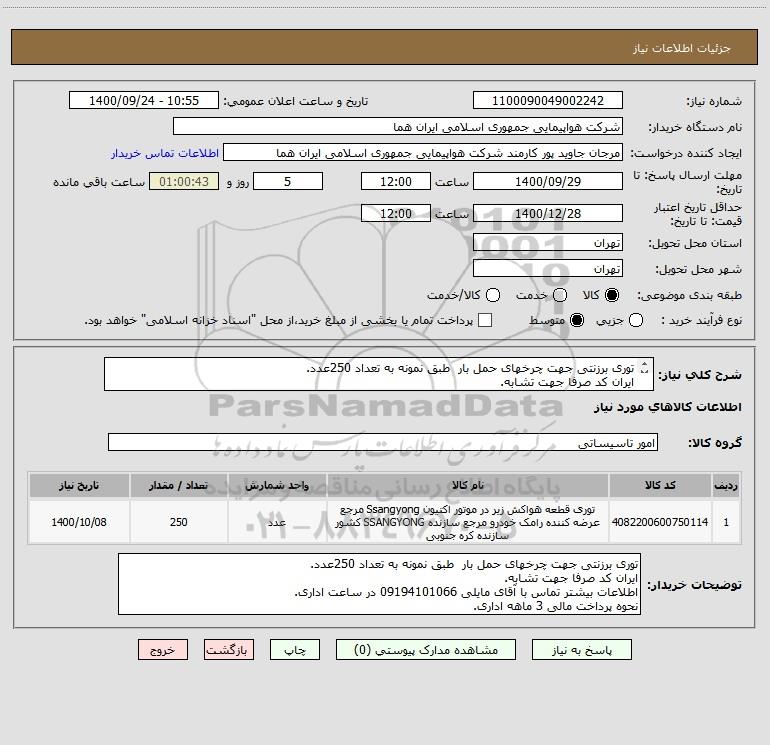 نام دستگاه خریدار:شرکت هواپیمایی جمهوری اسلامی ایران هما