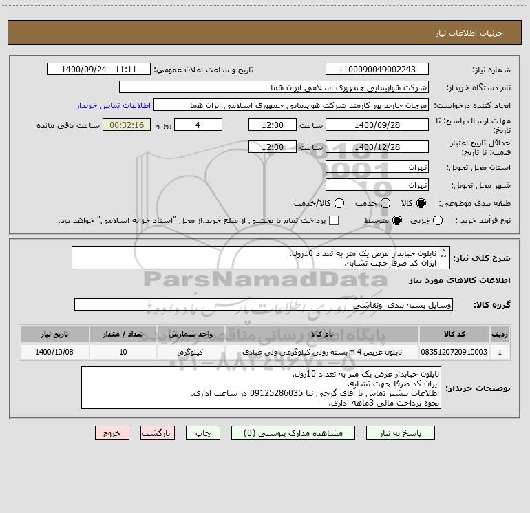نام دستگاه خریدار:شرکت هواپیمایی جمهوری اسلامی ایران هما