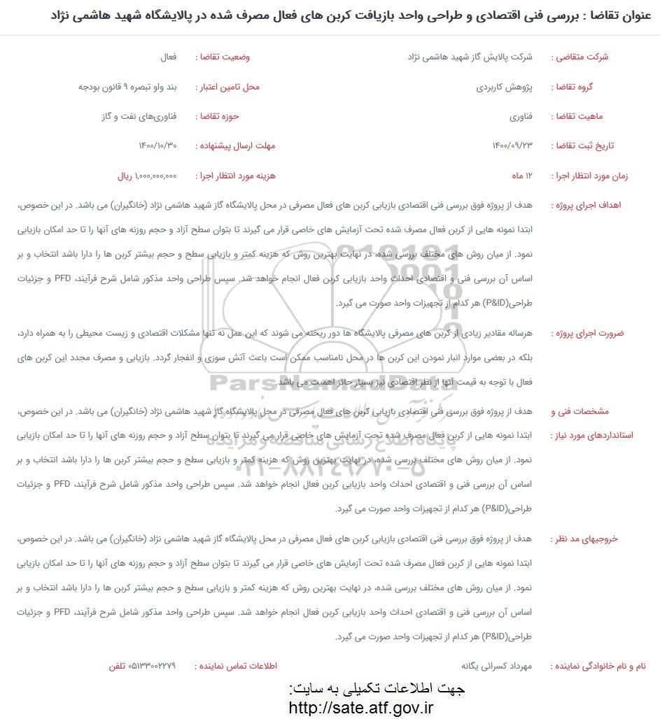 شرکت متقاضی: شرکت پالایش گاز شهید هاشمی نژاد